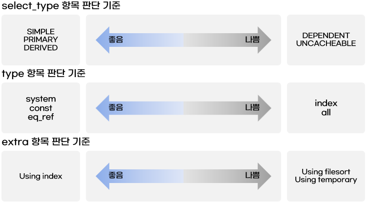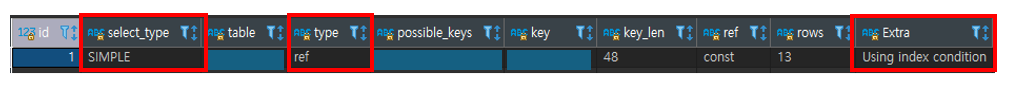 실행 계획(explain)을 수행하여 출력된 정보를 살펴보면,